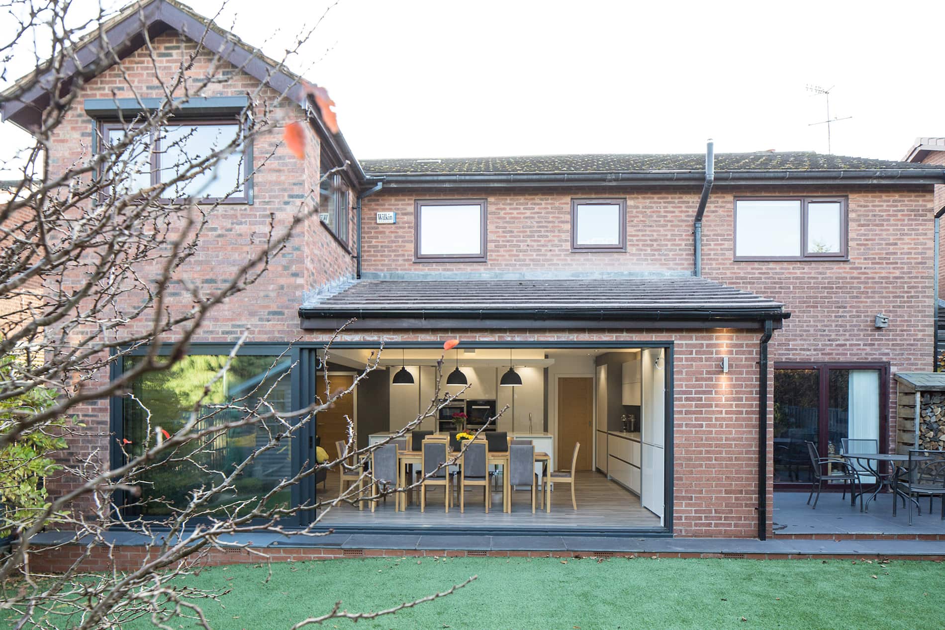 We used large aluminium sliding patio doors, provided by Express Bi-folding Doors, to open the extension out to the garden. In the back garden itself, we used astroturf, re-levelled and laid a patio to create a low maintenance space that looks great all year round.