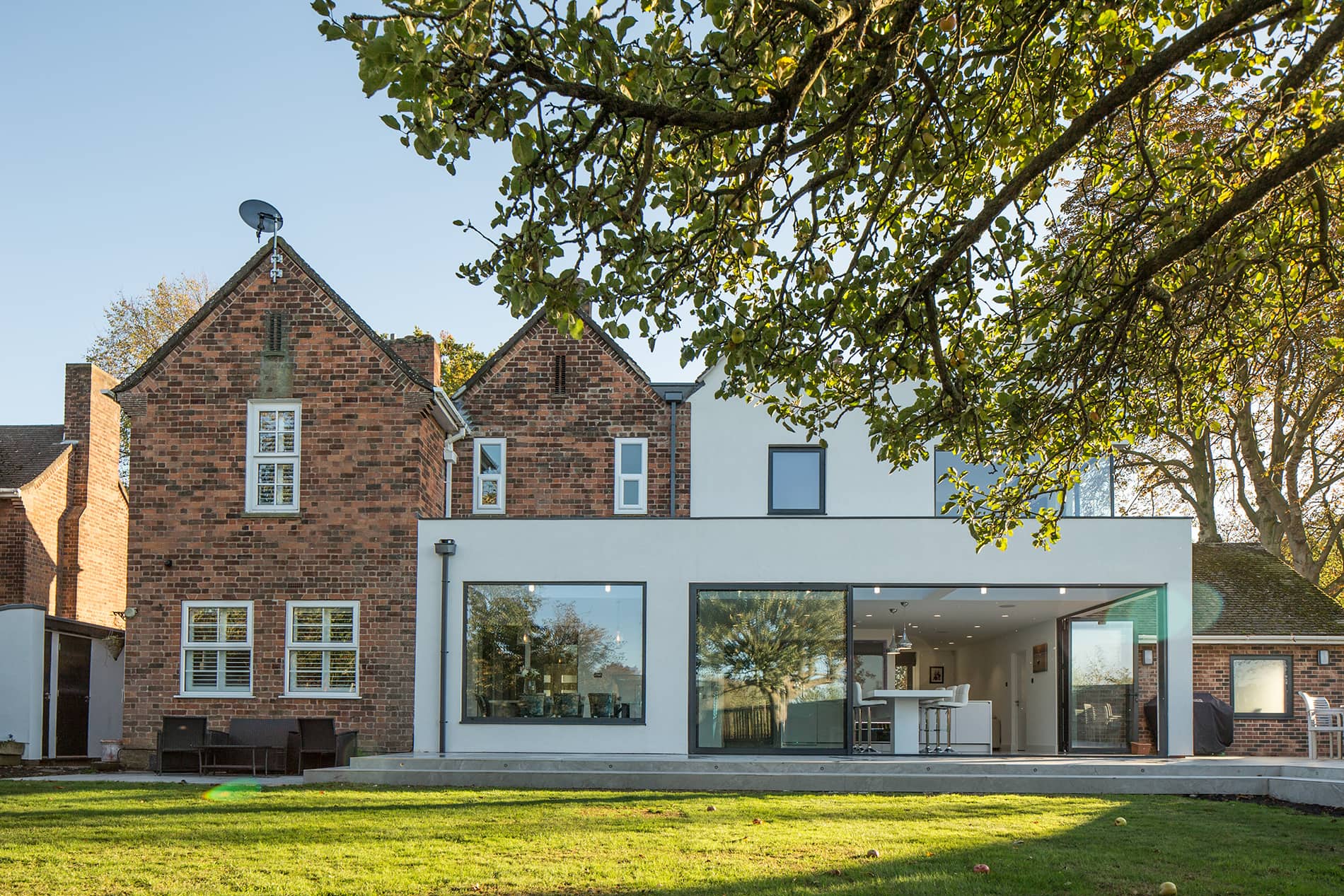 Located in the historic North Yorkshire farming village of Church Fenton, Willow House is a former RAF officers residence that was in need of modernisation. Working with Coda Bespoke we have renovated and extended the property to create contemporary open plan living spaces perfect for family life. The property has a bold exterior whilst being sensitive to the original building. Clean lines blend with the old house to enhance the living space and bring the outside in.